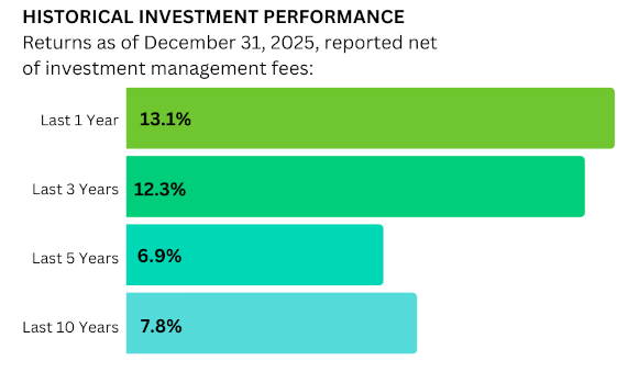 - Grow the principal at a rate that will outpace inflation through investments that emphasize and are focused on asset quality